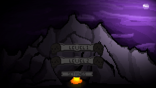 The Main menu of the game features the same pixel art style and more flickering lights.